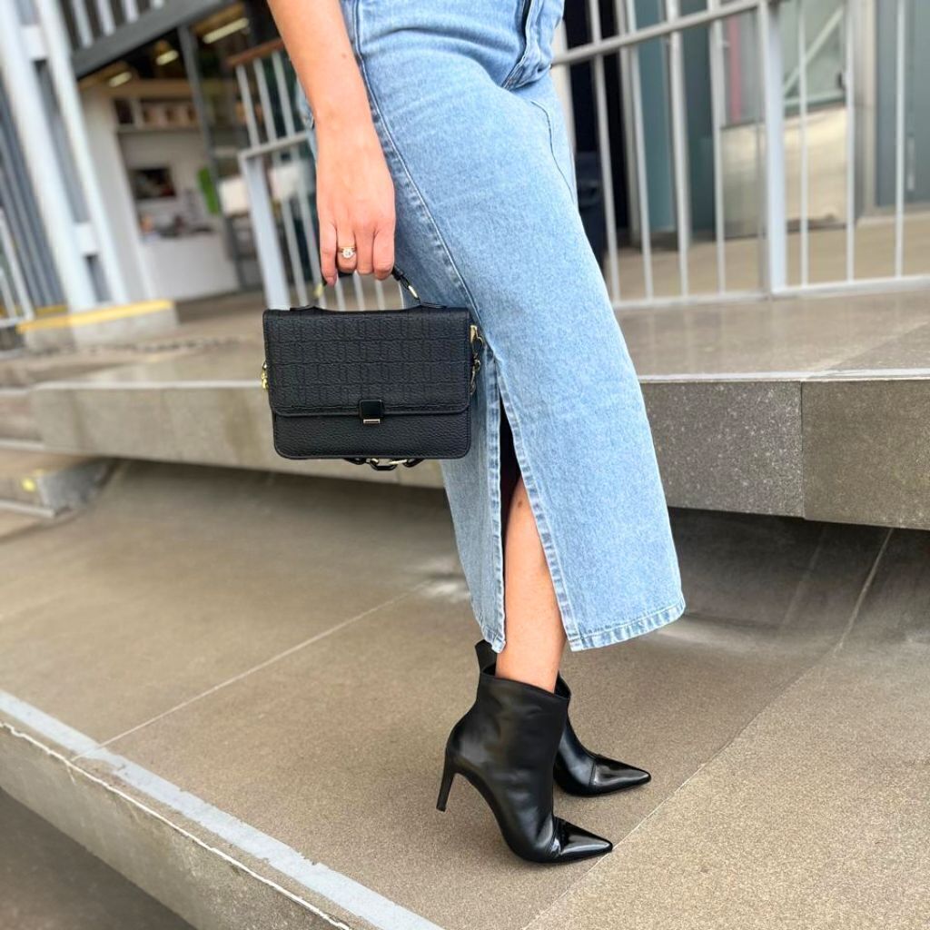 Bota Couro Confort, Salto Fino, confeccionada em couro legítimo, com zíper lateral, bico fino, salto medindo 8,5 cm, e sola trabalhada em couro bege, essa bota com salto fino é a escolha perfeita para compor looks marcantes, seu acabamento em couro traz durabilidade e requinte, enquanto o detalhe em verniz no bico adiciona um toque moderno e refinado.