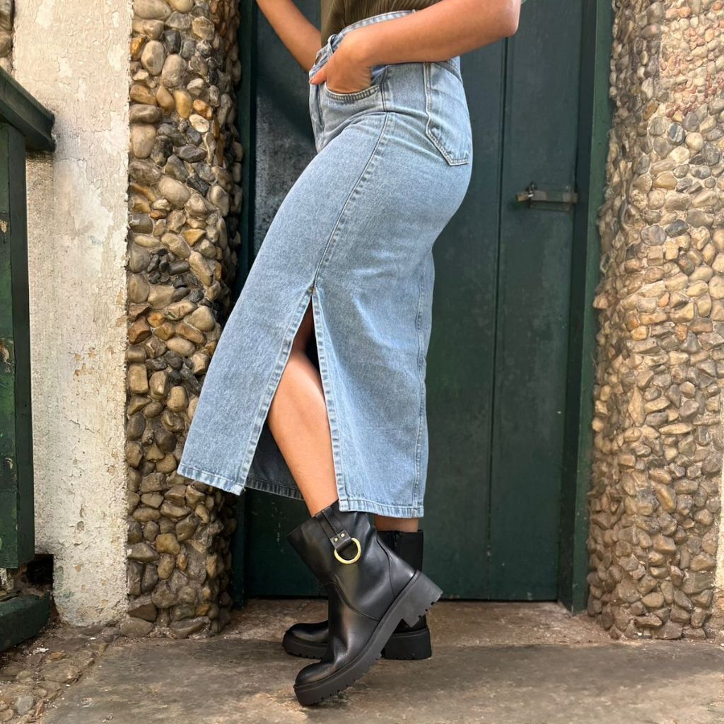 Coturno Couro Confort Preto, confeccionada em couro legítimo, sola tratorada na cor preta, detalhe lateral ônix na cor dourada, zíper lateral, com acabamento de alta qualidade, o modelo traz sola tratorada para maior aderência e segurança, sendo robusto e atemporal, este coturno é a união perfeita entre estilo e resistência.